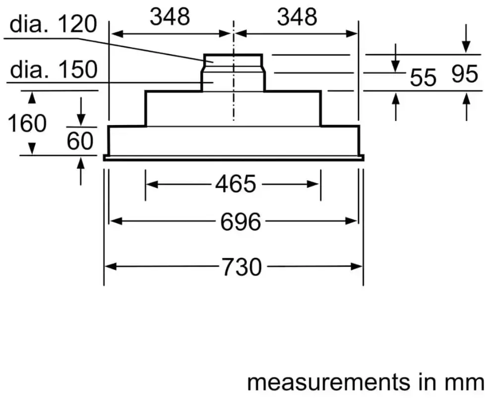 | Диаметр воздуховода (мм) | 120 / 150 |