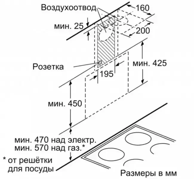 | Дополнительные параметры | Цветовая температура освещения: 3000 К Класс эффективности освещения: A* Класс эффективности вытяжного вентилятора: C* Класс эффективности жироулавливающего фильтра: D* Максимальная производительность в режиме циркуляции (м³ / ч): 250 Максимальное акустическое давление: 56 Освещенность до 377 люкс Мотор в корпусе вытяжки Среднегодовое энергопотребление: 87 кВтч / год Среднегодовое энергопотребление (кВтч): 87.0 В режиме циркуляции воздуха не используется воздуховод Тип воздухопровода: Трансформируемый |