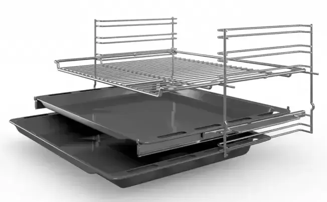 | Комплектация | Телескопические направляющие (1-уровневые) Решетка Термощуп Универсальный противень Эмалированный противень |