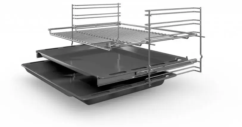 | Комплектация | Телескопические направляющие (1-уровневые) Решетка Термощуп Универсальный противень Эмалированный противень |