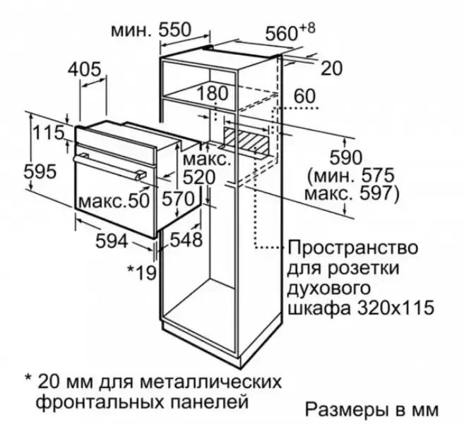 | Размеры ниши для встраивания, ВхШхГ (см) | 57.5-59.7х56-56.8х55 |