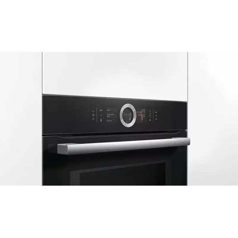 | Дополнительные параметры | Автоматические программы DishAssist Сенсор готовности выпечки PerfectBake Многоточечный термощуп PerfectRoast Технология Home Connect 3 цветных текстовых TFT-дисплея 2,5" Максимальная мощность микроволн: 800 Вт 5 уровней мощности микроволн (90 Вт,180 Вт, 360 Вт, 600 Вт,800 Вт) Функция "Блокировка от детей" с возможностью настройки Автоматическое защитное отключение Многофункциональные часы Индикация отсутствия воды в резервуаре Конвекционный вентилятор из нержавеющей стали Предложение по установке температуры |