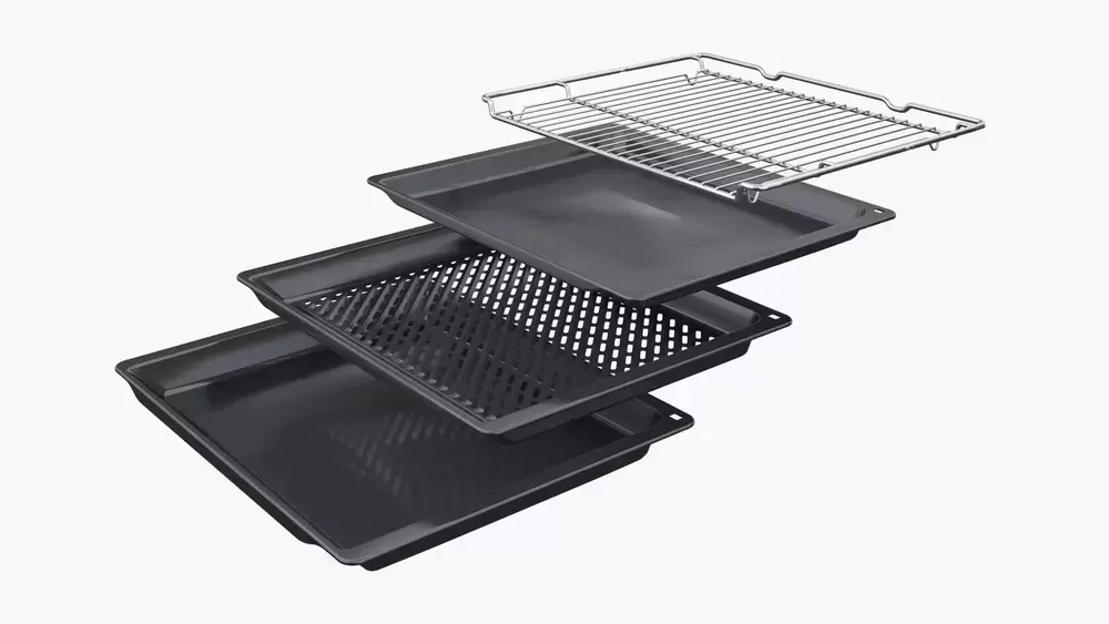 | Комплектация | Телескопические направляющие (1-уровневые) Решетка Термощуп Универсальный противень Эмалированный противень |