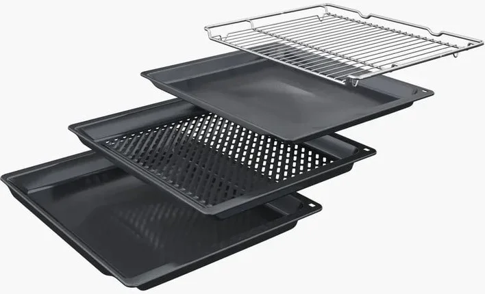 | Комплектация | Телескопические направляющие Решетка Термощуп Противень Противень для жарки / гриля Эмалированный противень |