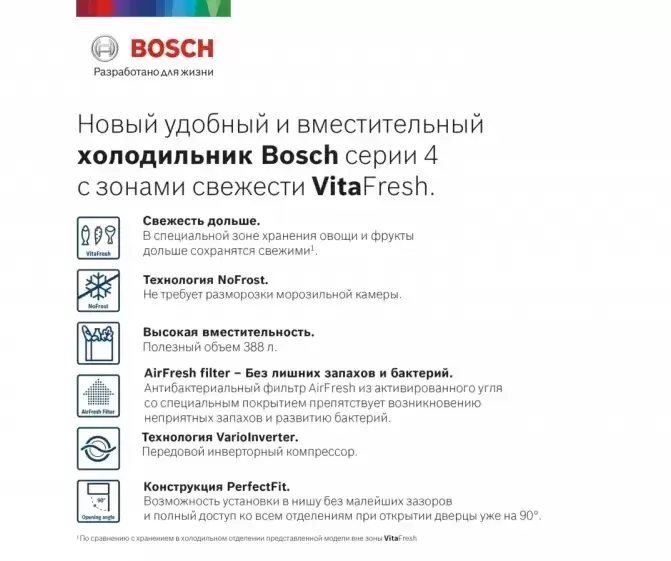 Холодильник с нижней морозильной камерой BOSCH KGN39VK24R — холодильник класса люкс, немецкого производства, сочетающий надёжность и передовые технологии Bosch.