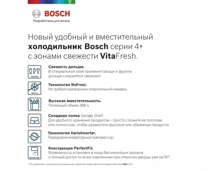 Холодильник с нижней морозильной камерой BOSCH KGN39XD20R — холодильник премиум-класса, немецкого производства, сочетающий надёжность и передовые технологии Bosch.