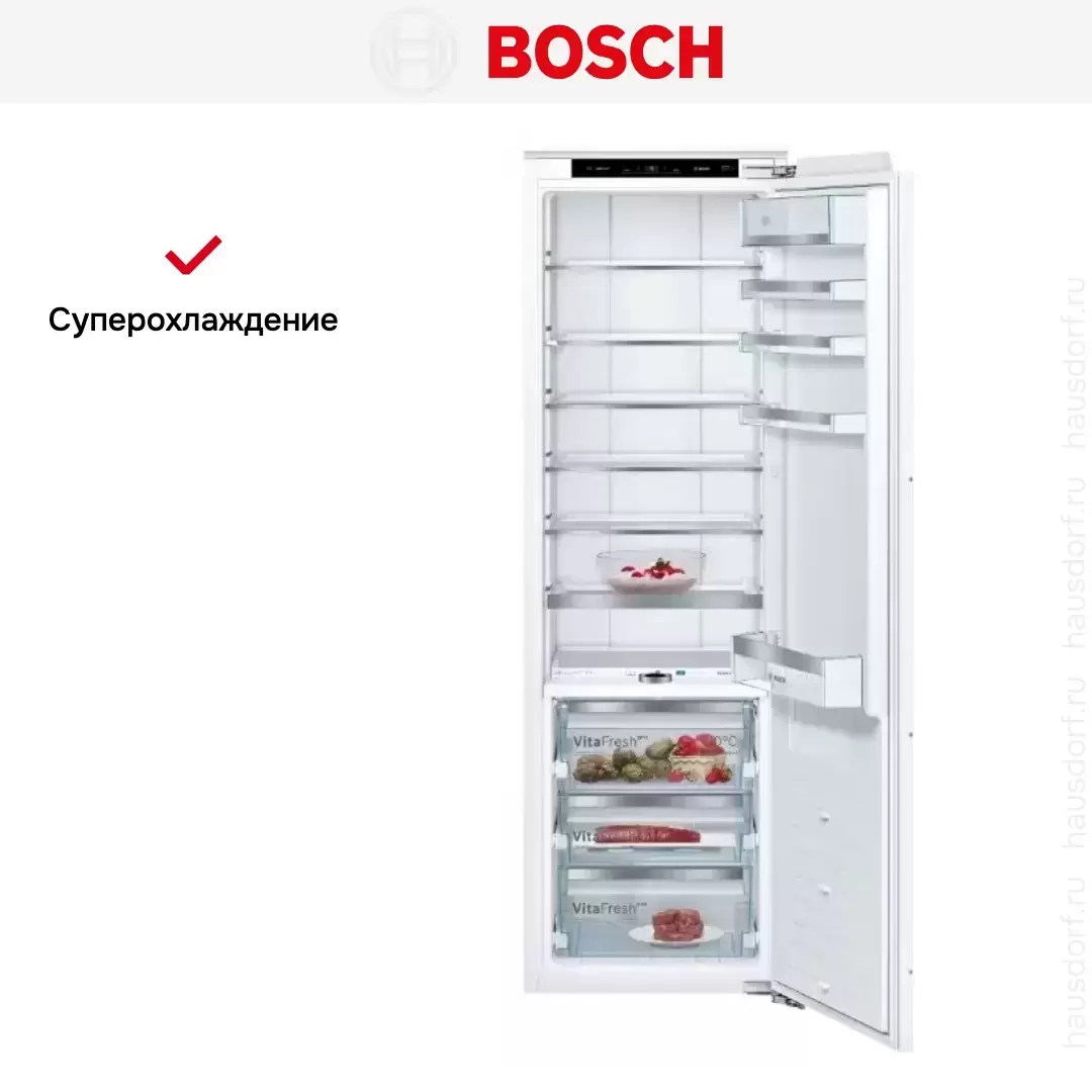 Встраиваемый холодильник BOSCH KIF81PD20R — флагманская модель в линейке Bosch (немецкого производства), холодильник премиум-класса.