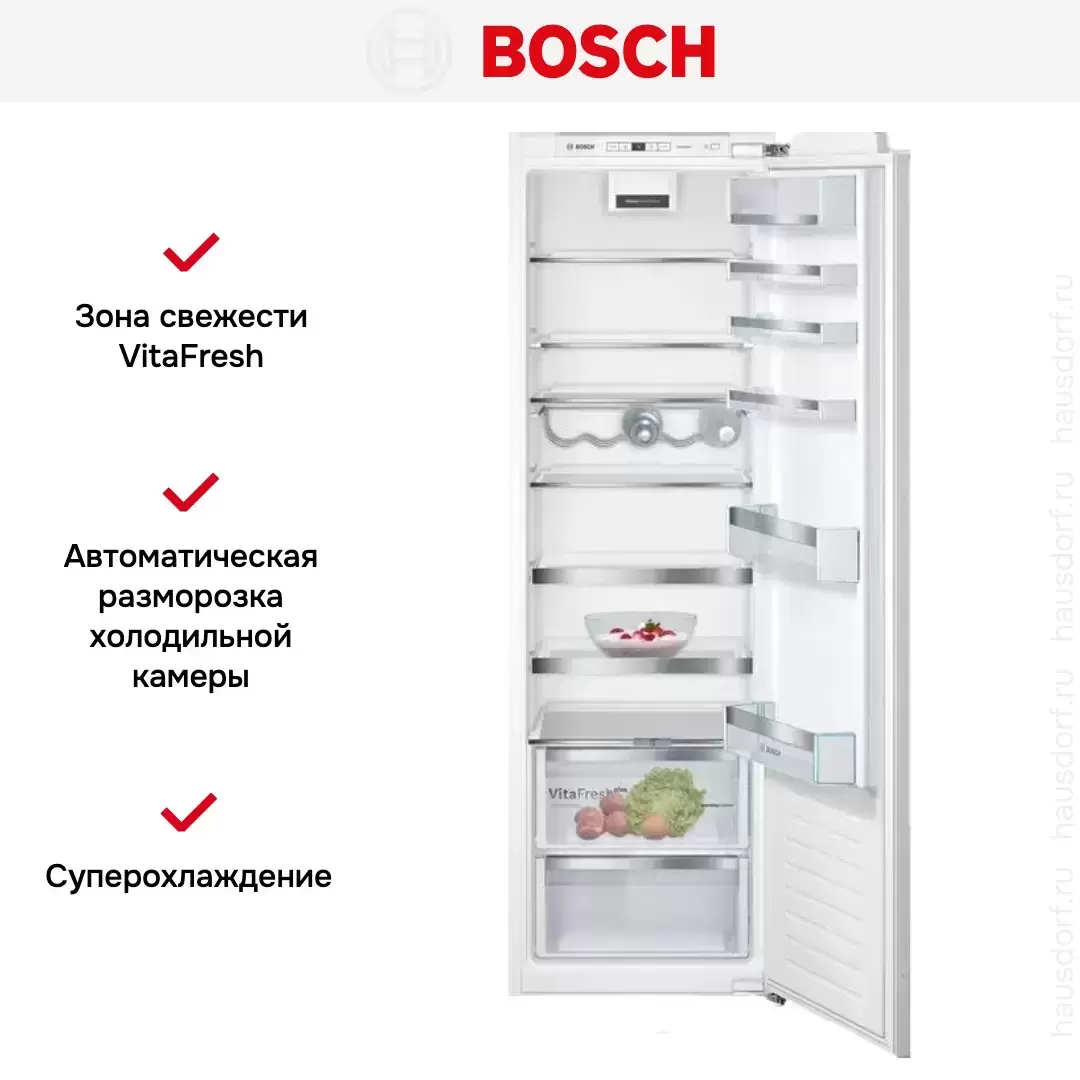 Встраиваемый однокамерный холодильник Bosch KIR 81 AFE0 — холодильник премиального сегмента, немецкого производства, сочетающий надёжность и передовые технологии Bosch.