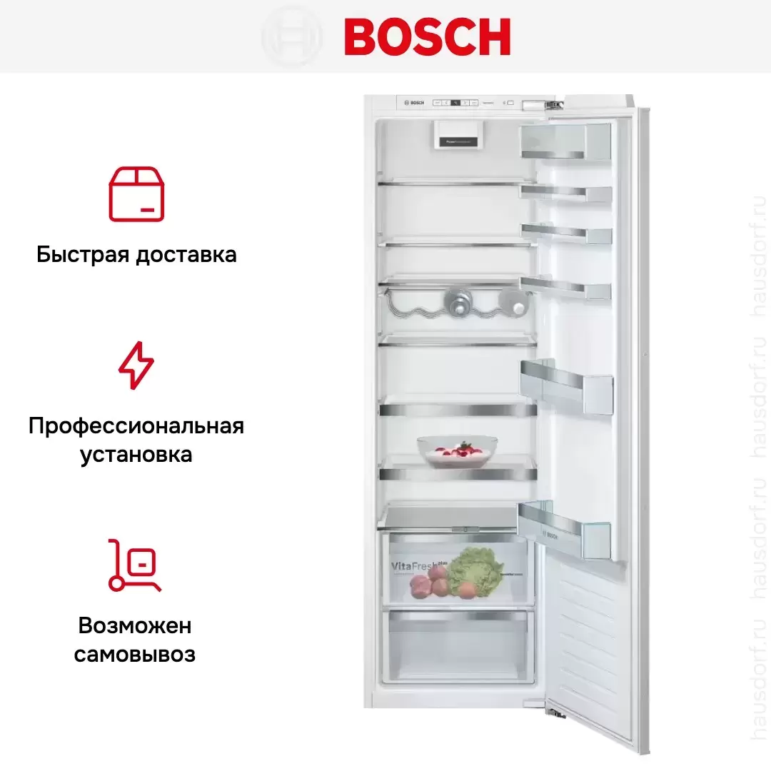 Встраиваемый однокамерный холодильник Bosch KIR81ADE0 — холодильник класса люкс, немецкого производства, сочетающий надёжность и передовые технологии Bosch.