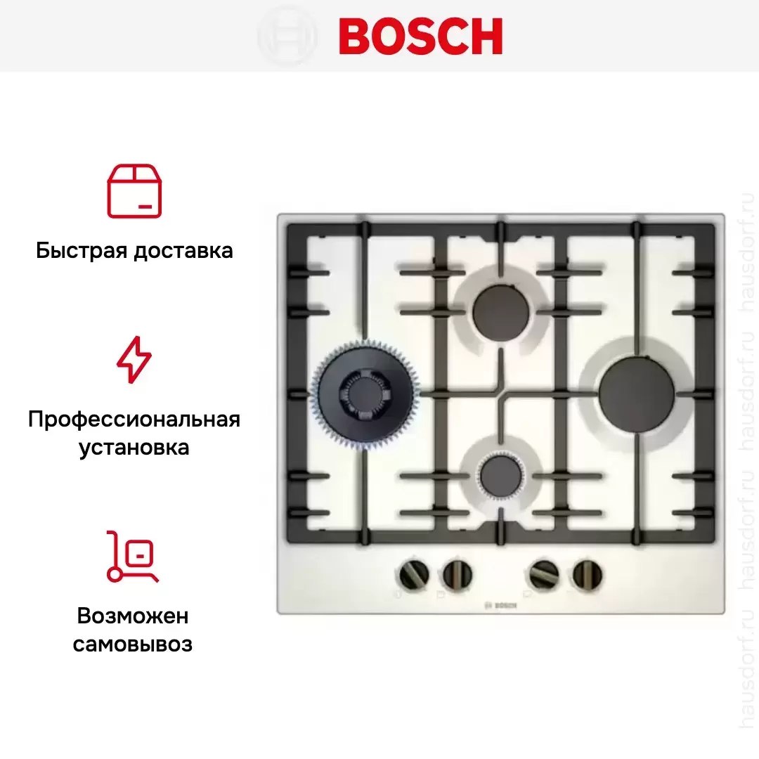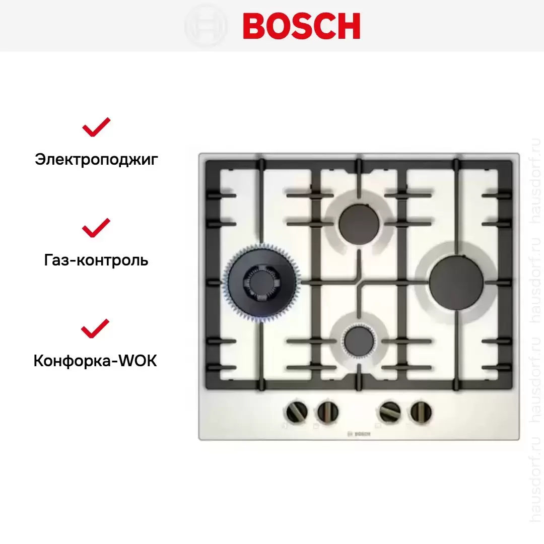 Газовая варочная панель BOSCH PCI6B1B90R — варочная панель премиального сегмента, немецкого производства, сочетающая надёжность и передовые технологии Bosch.