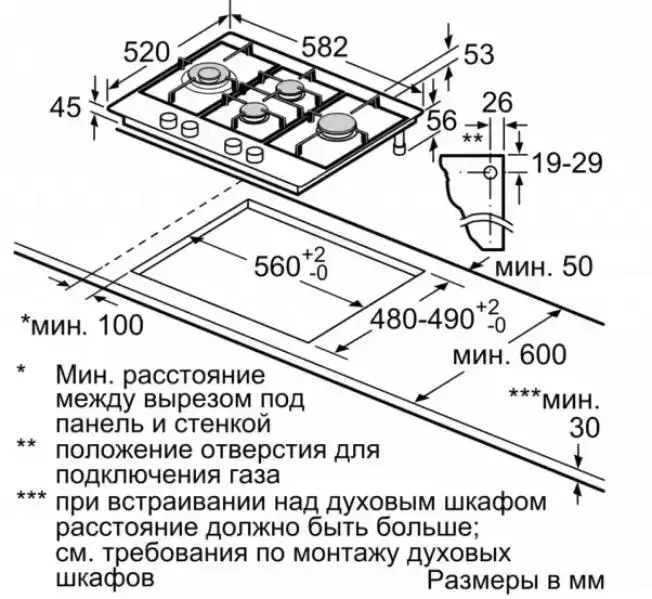| Размеры ниши для встраивания (Ш х Г), см | 4.5х56х48 |