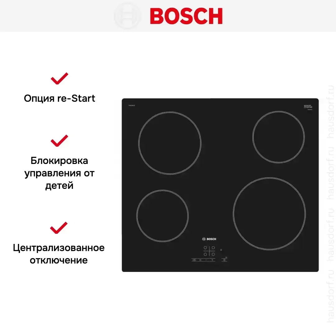 Электрическая варочная панель BOSCH PKE611B17E — варочная панель высшего класса, немецкого производства, сочетающая надёжность и передовые технологии Bosch.