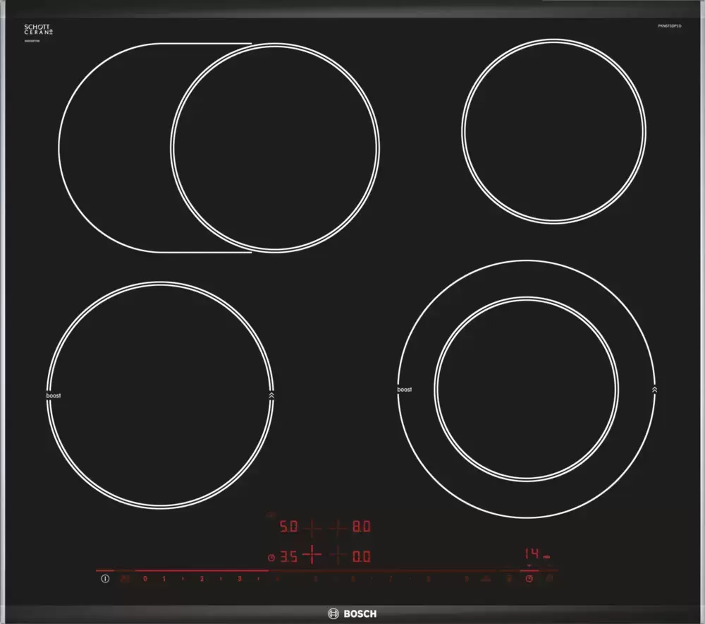 Электрическая варочная панель Bosch PKN 675 DP1D — варочная панель премиального сегмента, немецкого производства, сочетающая надёжность и передовые технологии Bosch.
