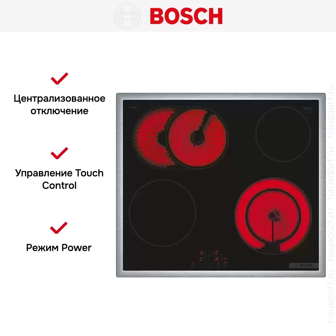 Варочная панель Bosch PKN645BB2R — варочная панель премиум-класса, немецкого производства, сочетающая надёжность и передовые технологии Bosch.