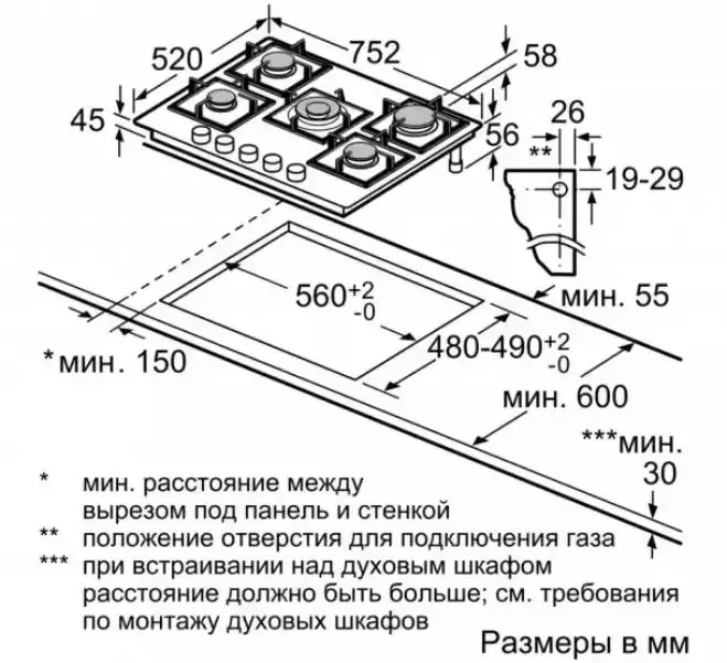 | Размеры ниши для встраивания (Ш х Г), см | 56х48 |