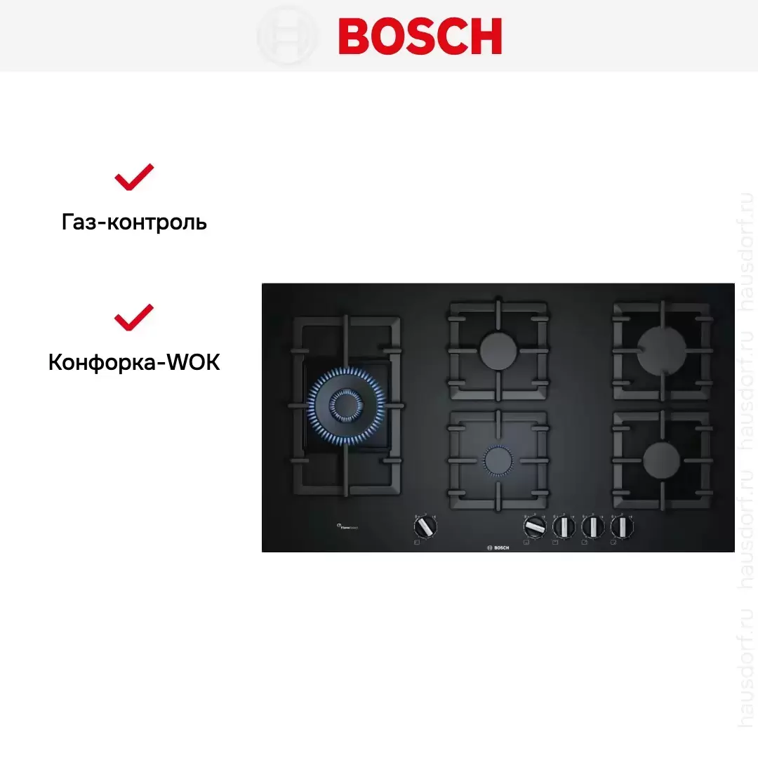 Газовая варочная панель Bosch PPS9A6B90 — флагманская модель в линейке Bosch (немецкого производства), варочная панель премиального сегмента.
