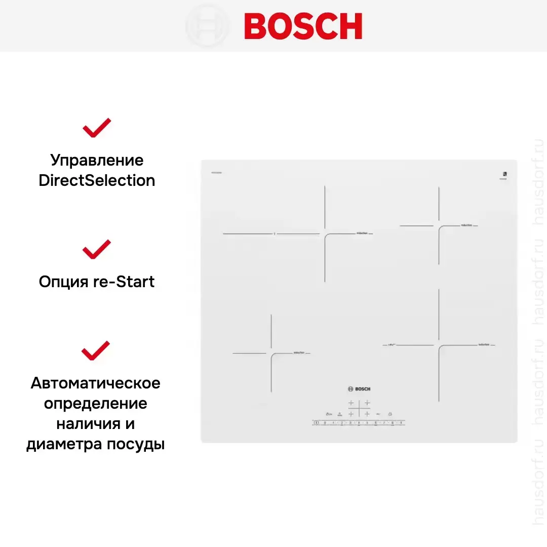 Индукционная варочная панель BOSCH PUF612FC5E — варочная панель высшего класса, немецкого производства, сочетающая надёжность и передовые технологии Bosch.