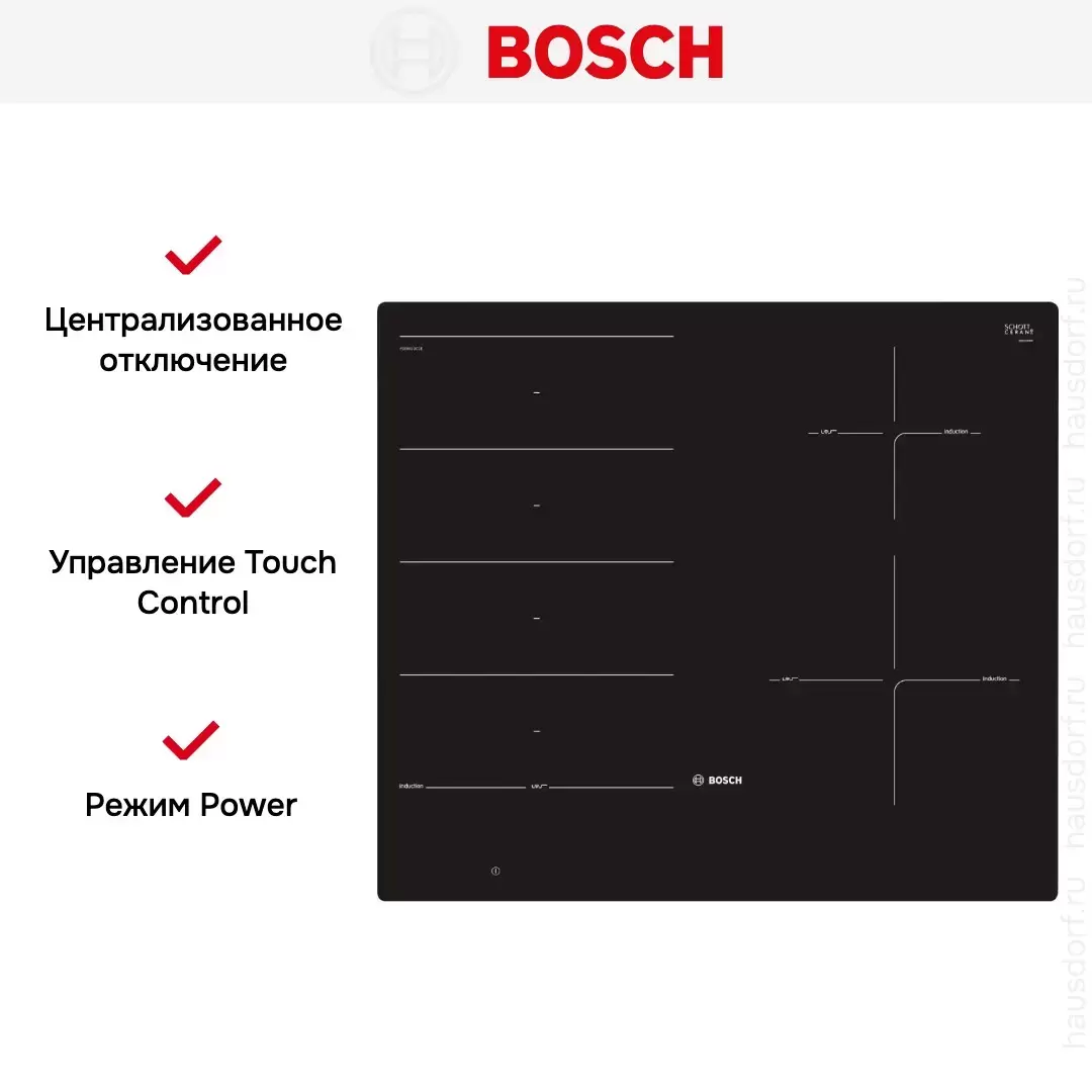 Индукционная варочная панель Bosch PXE601DC1E — варочная панель премиум-класса, немецкого производства, сочетающая надёжность и передовые технологии Bosch.