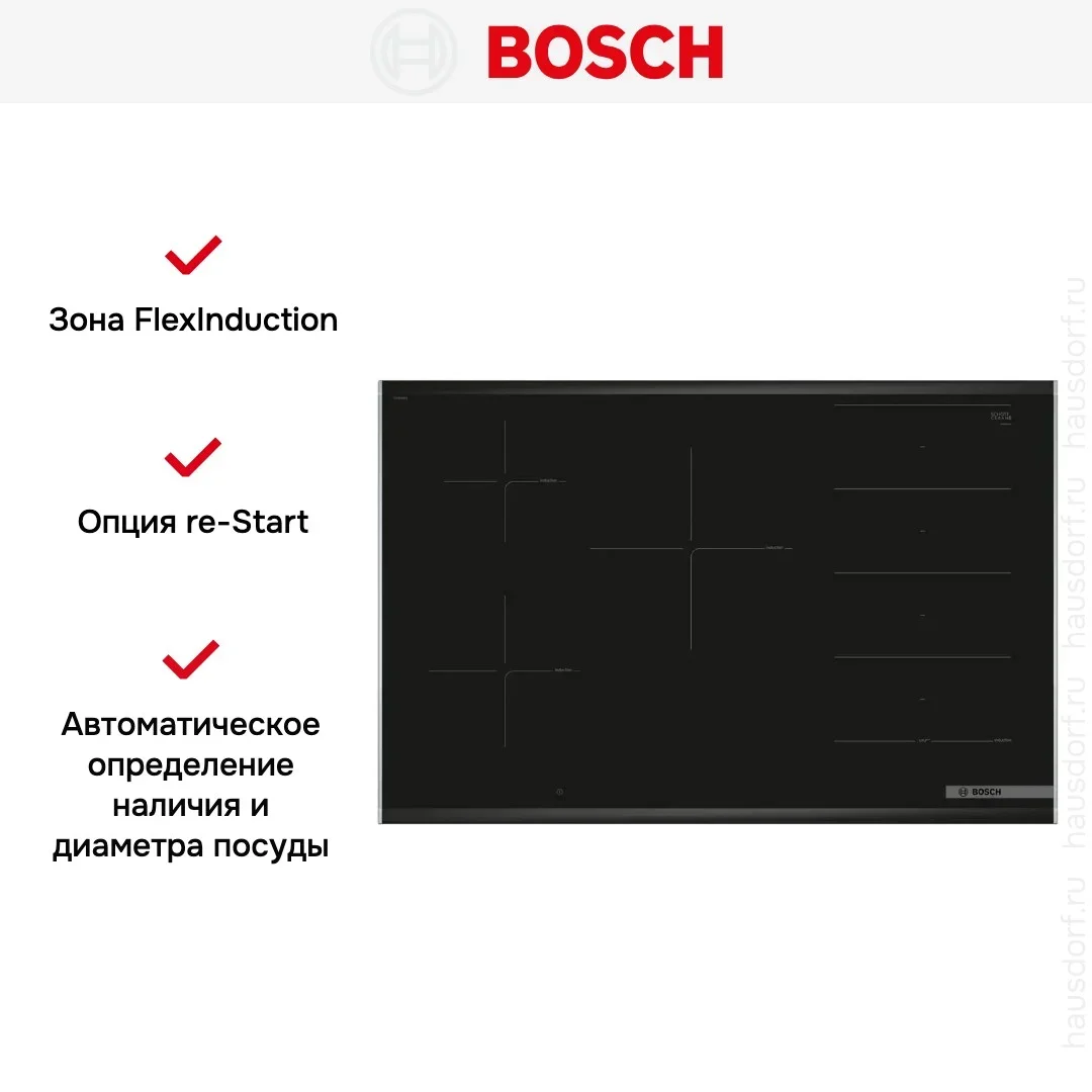 Индукционная варочная панель Bosch PXV875DV1E — флагманская модель в линейке Bosch (немецкого производства), варочная панель премиального сегмента.