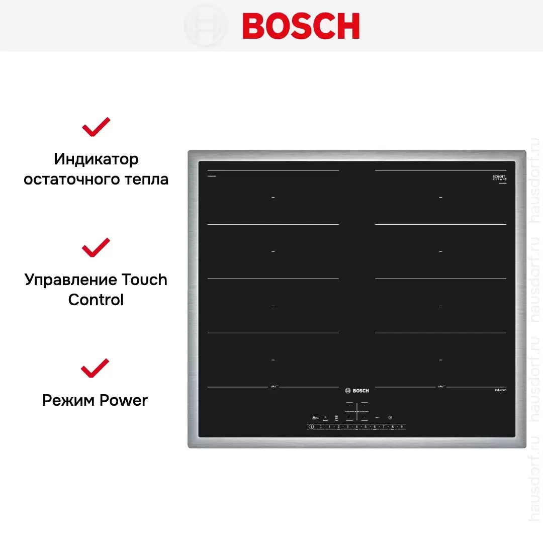 Индукционная варочная панель Bosch PXX645FC1E — варочная панель премиального сегмента, немецкого производства, сочетающая надёжность и передовые технологии Bosch.