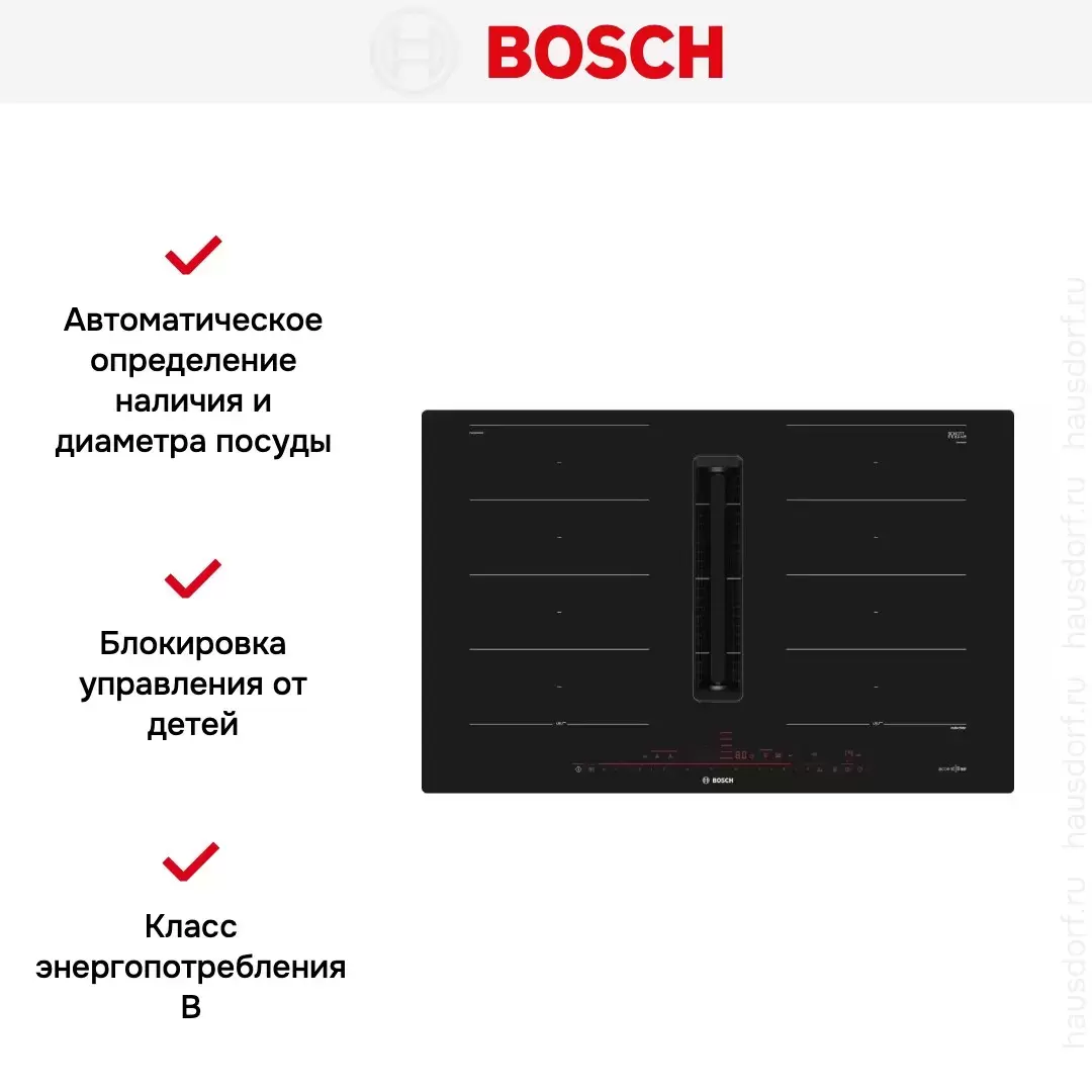 Индукционная варочная панель с интегрированной вытяжкой BOSCH PXX821D66E — флагманская модель в линейке Bosch (немецкого производства), варочная панель премиального сегмента.