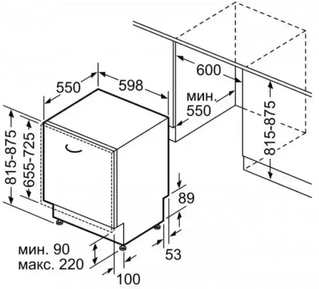 | Размеры ниши для встраивания (ВхШхГ) (см) | 81.5-87.5х60х55 |