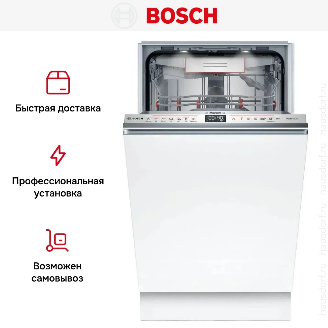 Встраиваемая посудомоечная машина Bosch SPV6YMX08E — посудомоечная машина высшего класса, немецкого производства, сочетающая надёжность и передовые технологии Bosch.