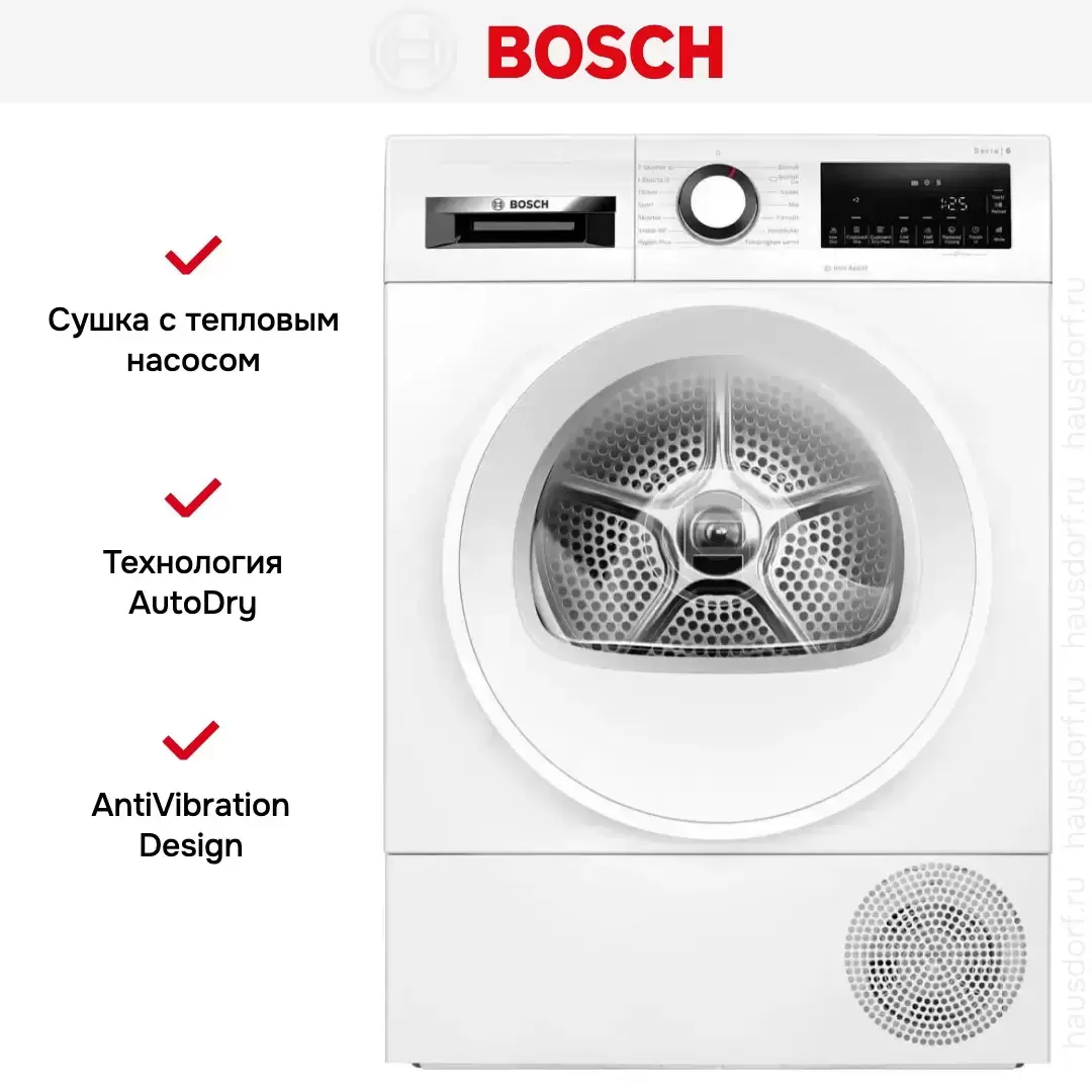 Сушильная машина Bosch WQG245ALSN — сушильная машина премиального сегмента, немецкого производства, сочетающая надёжность и передовые технологии Bosch.