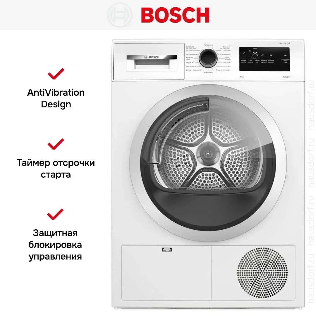 Сушильная машина Bosch WTH85V8EPL — флагманская модель в линейке Bosch (немецкого производства), сушильная машина премиум-класса.