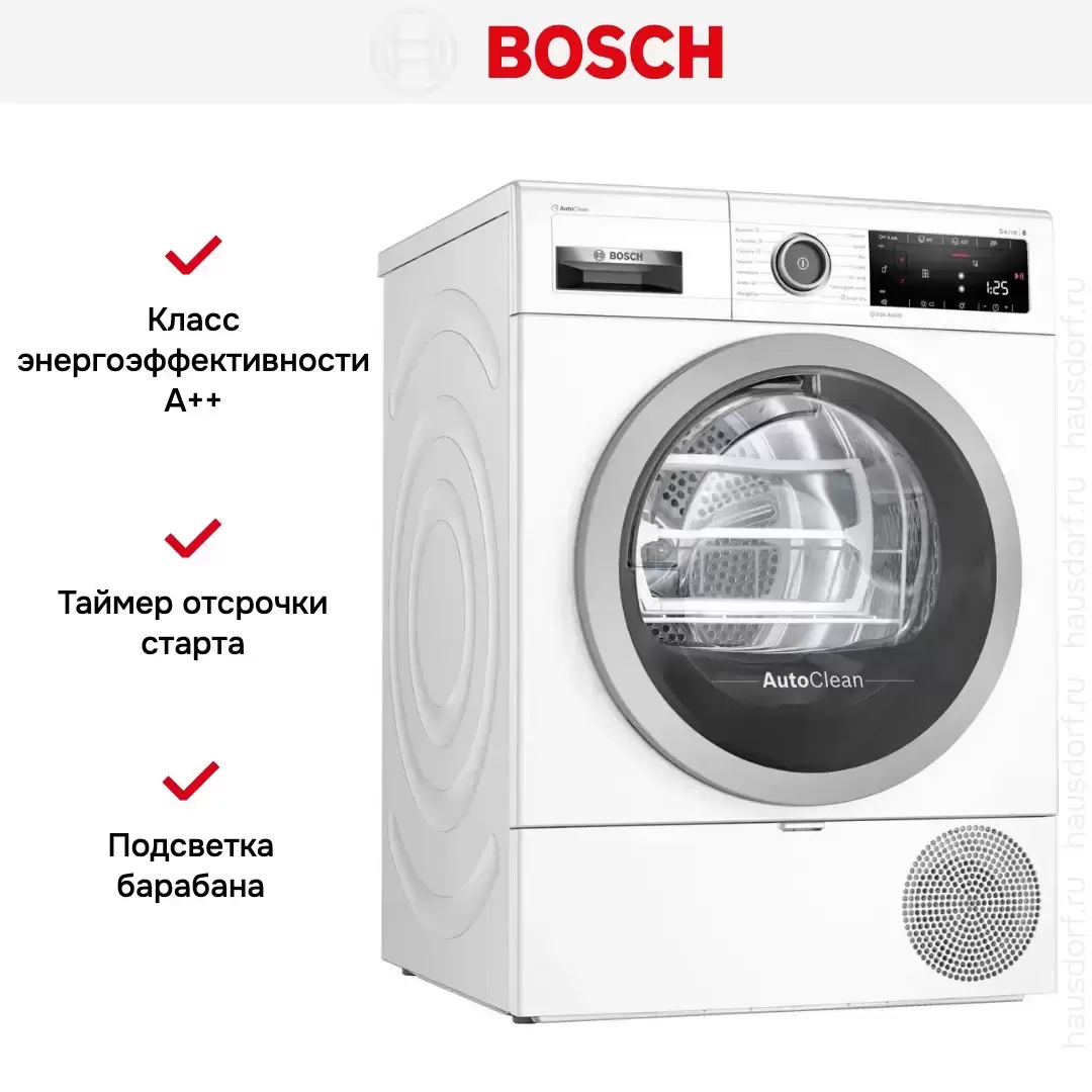 Сушильная машина Bosch WTX8HKB9SN — флагманская модель в линейке Bosch (немецкого производства), сушильная машина премиального сегмента.