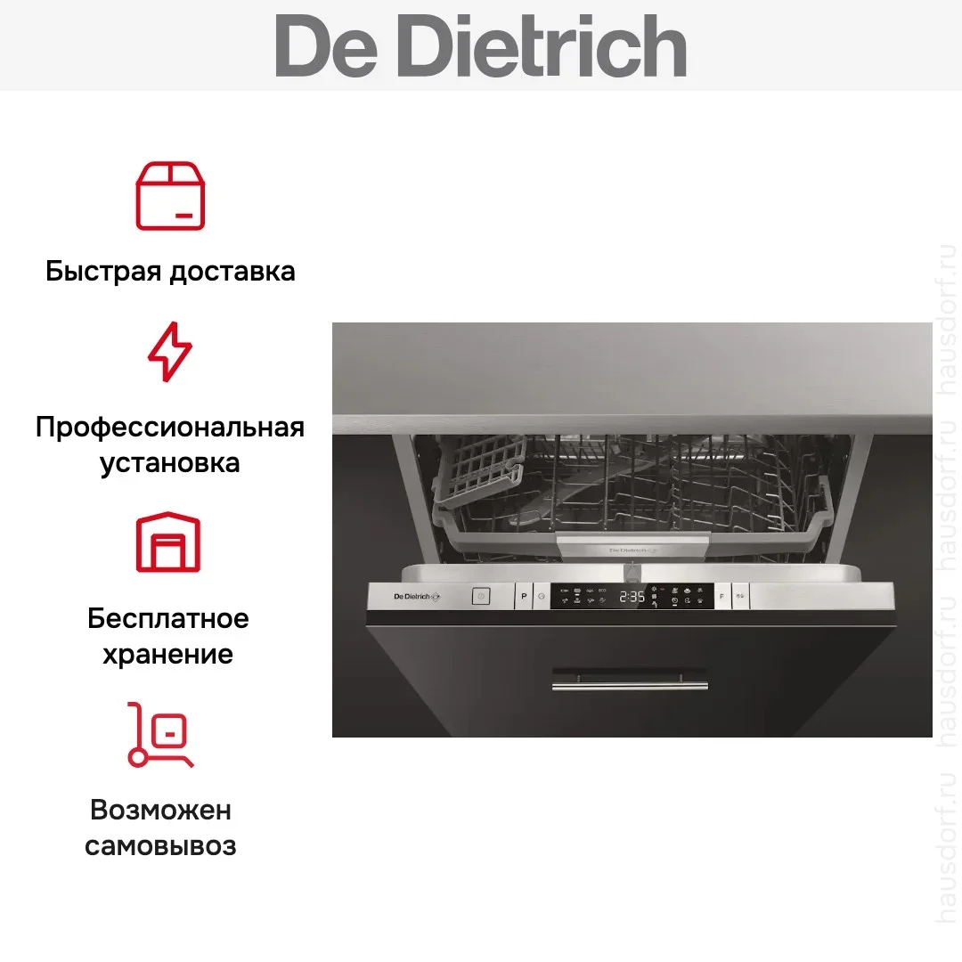 Встраиваемая посудомоечная машина De Dietrich DBJ422DQX — посудомоечная машина класса люкс от французского производителя De Dietrich.