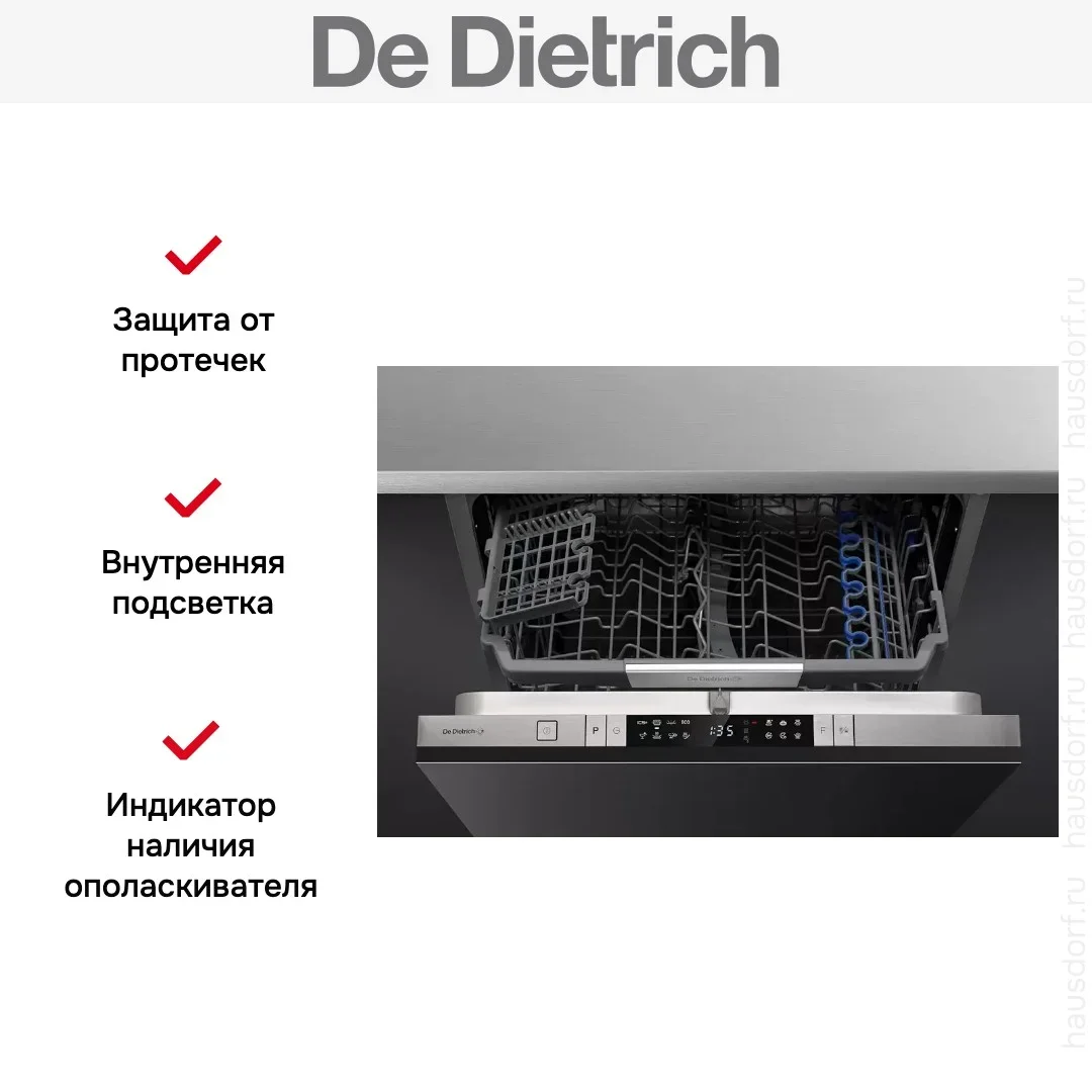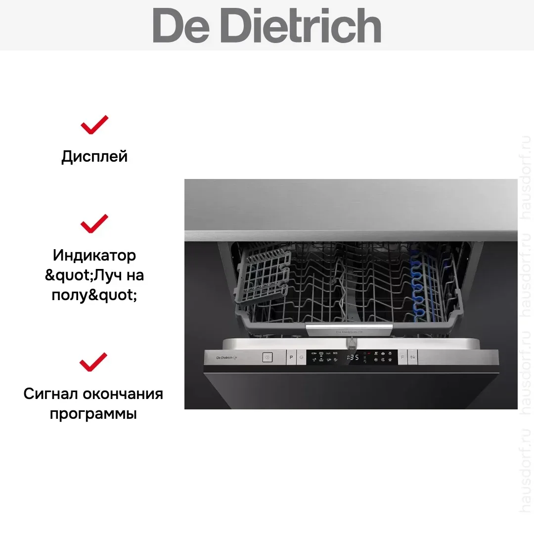 Встраиваемая посудомоечная машина De Dietrich DCJ424DQX — посудомоечная машина высшего класса, французского производства, сочетающая надёжность и передовые технологии De Dietrich.