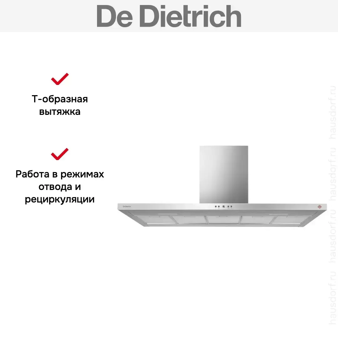 Вытяжка De Dietrich DHB4255X — кухонная вытяжка премиального сегмента, французского производства, сочетающая надёжность и передовые технологии De Dietrich.