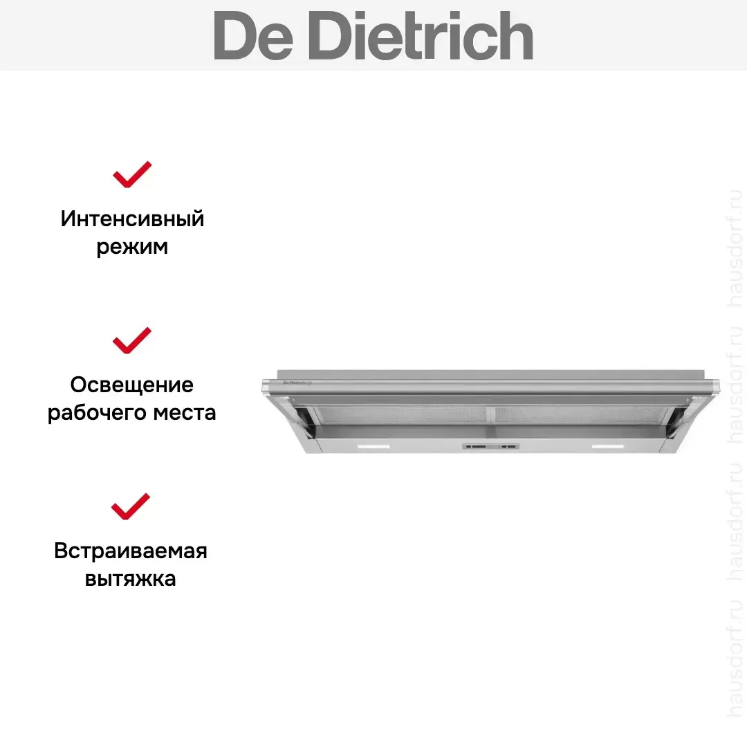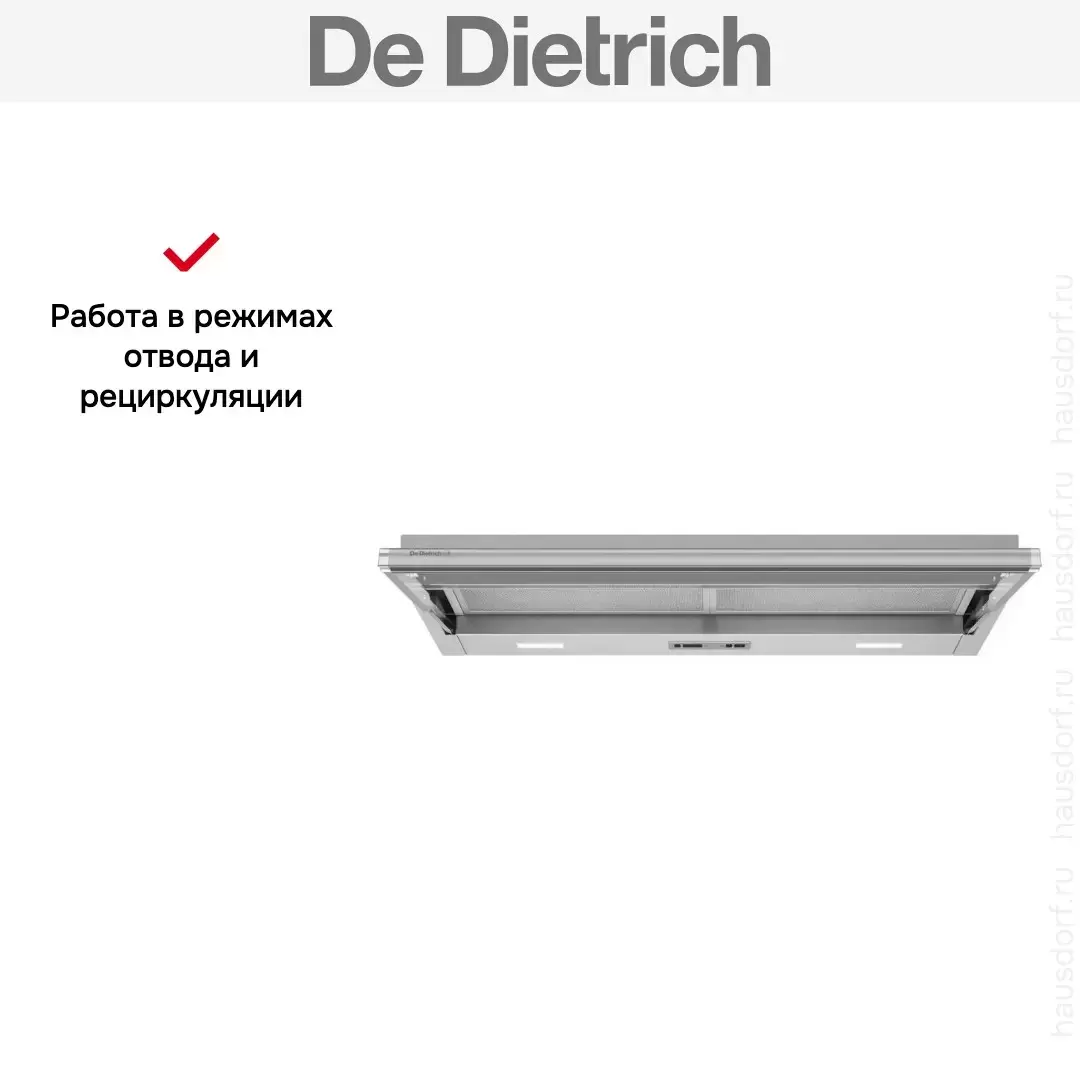 Встраиваемая вытяжка De Dietrich DHT3922X — флагманская модель в линейке De Dietrich (французского производства), кухонная вытяжка премиум-класса.