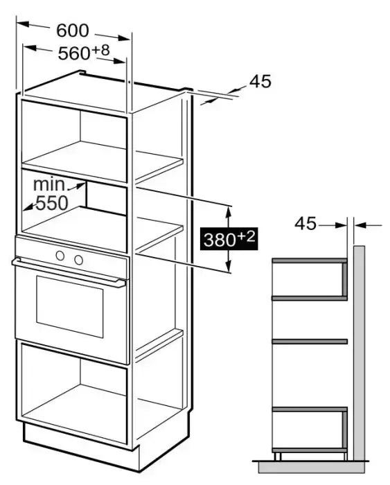 | Размеры ниши для встраивания (ВxШxГ) (cм) | 38-38.2х56-56.8х55 |