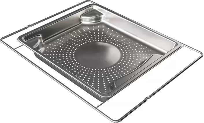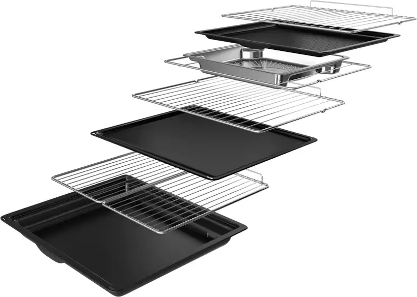 | Комплектация | Телескопические направляющие (1-уровневые) Решетка (2 шт) Противень Глубокий противень Перфорированный противень из стали Неперфорированный стальной противень |