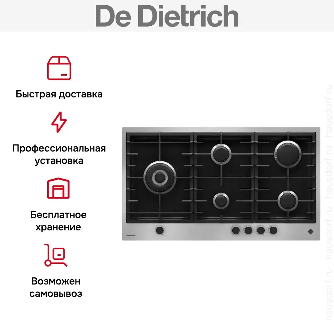 Газовая варочная панель De Dietrich DPE4929XF — варочная панель премиум-класса, французского производства, сочетающая надёжность и передовые технологии De Dietrich.