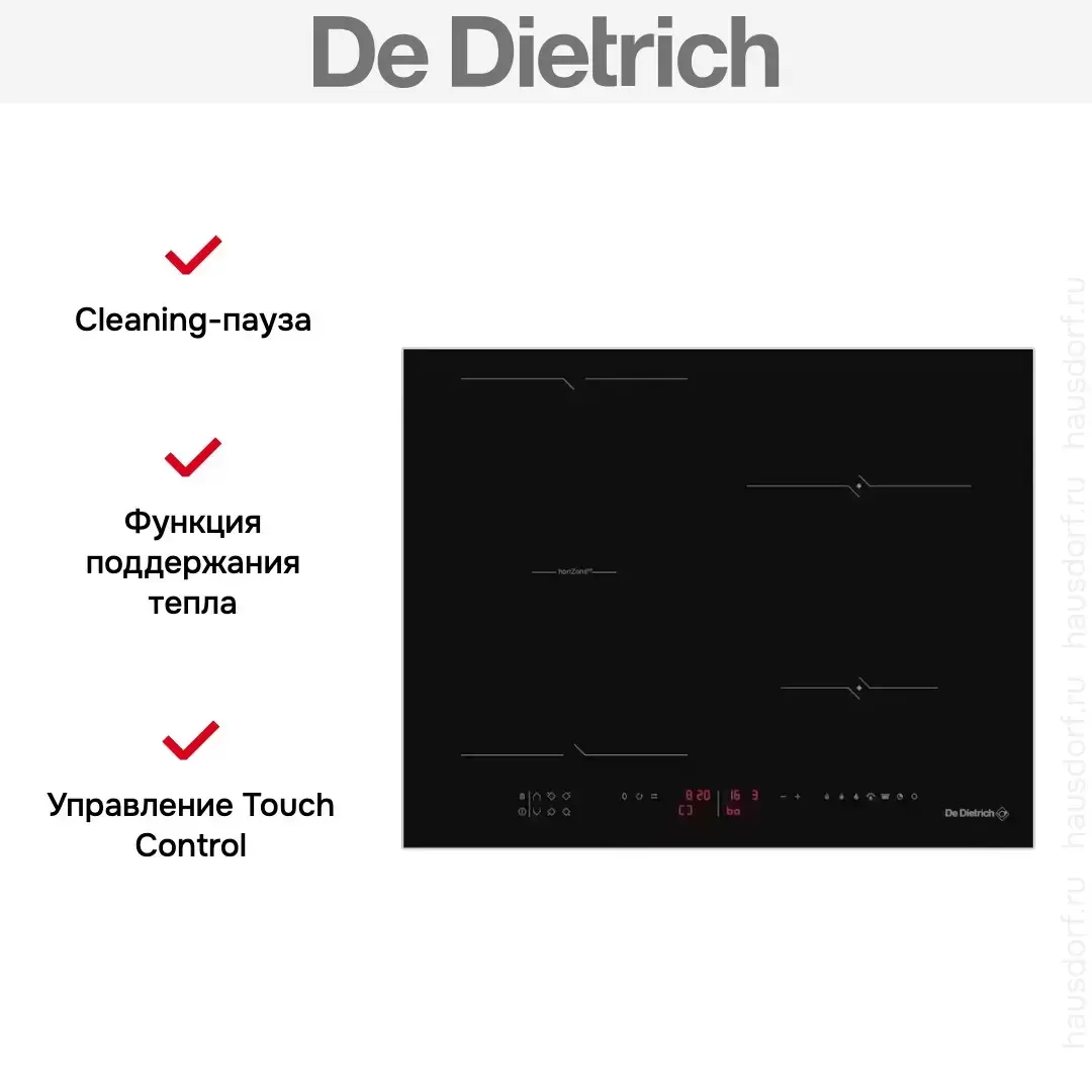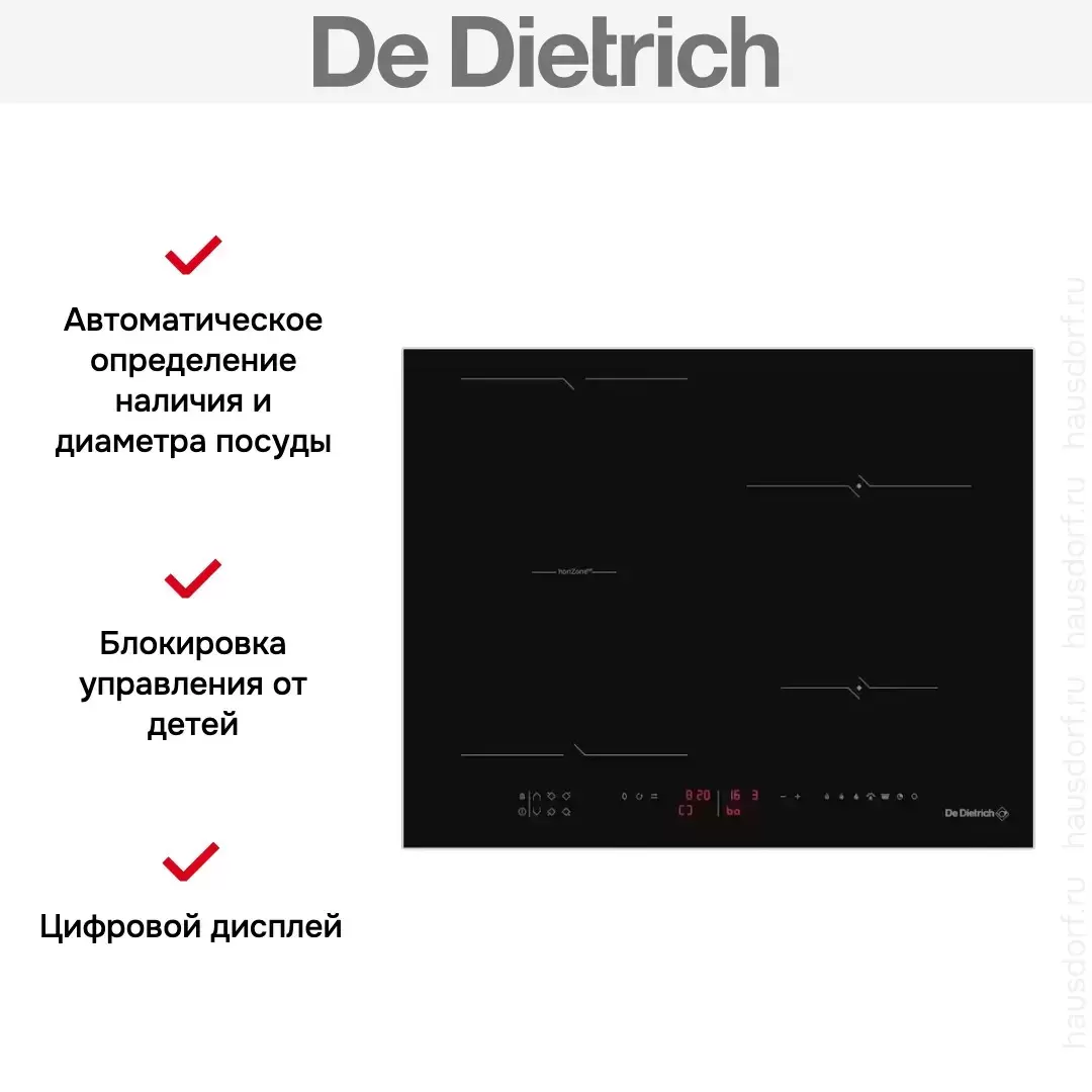 Индукционная варочная панель De Dietrich DPI4411B — флагманская модель в линейке De Dietrich (французского производства), варочная панель высшего класса.