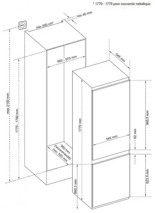 Тип: встраиваемый. Вид: холодильник с морозильником.