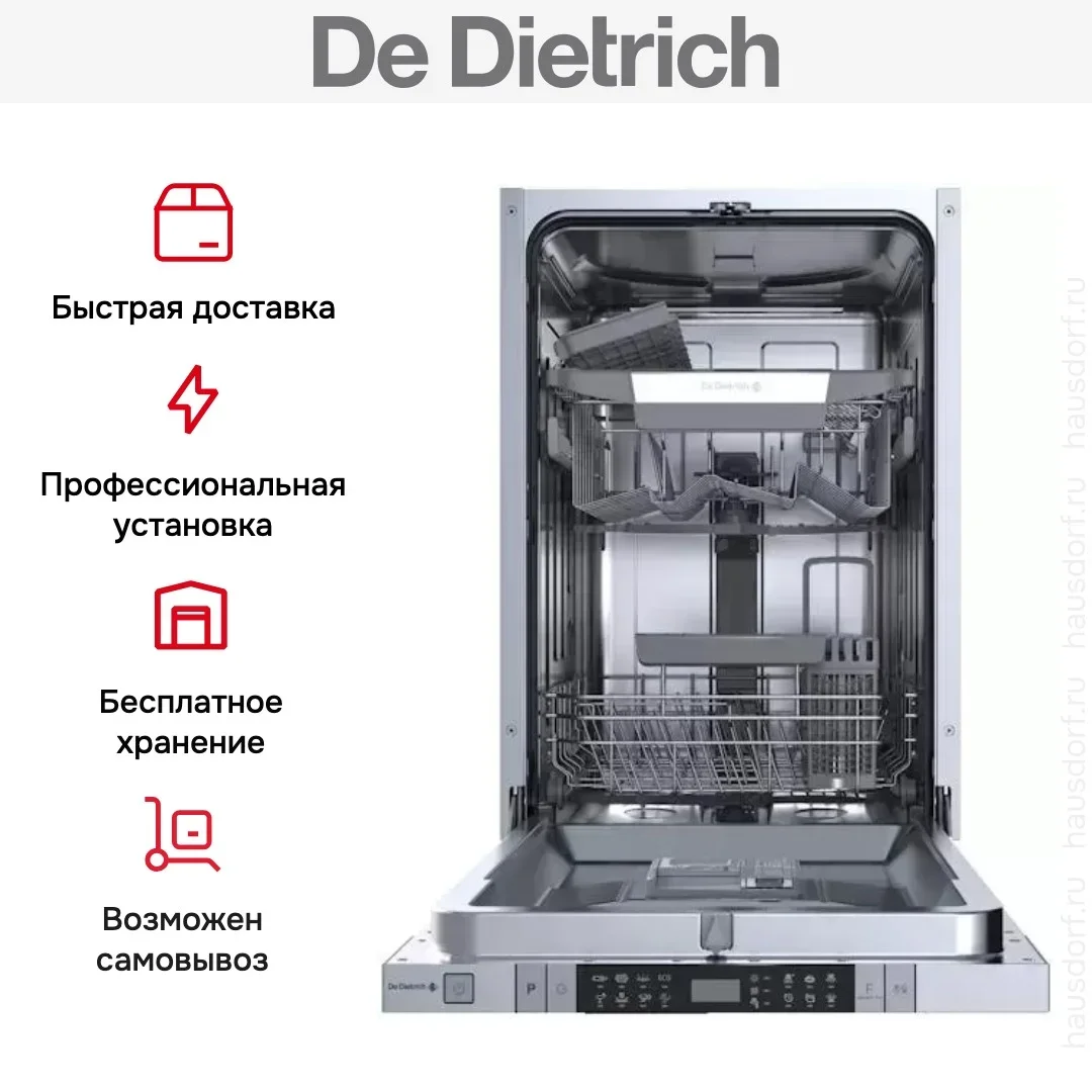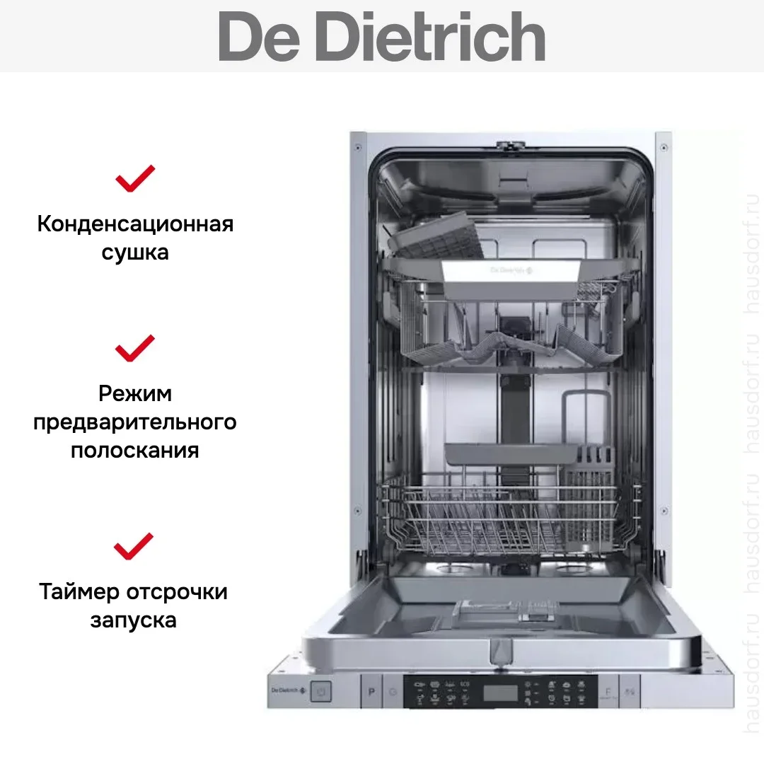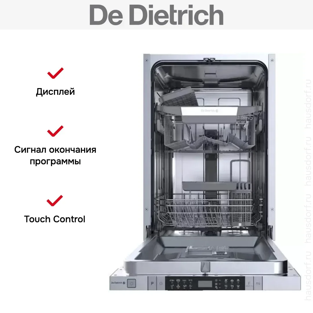 Встраиваемая посудомоечная машина De Dietrich DV301044J — флагманская модель в линейке De Dietrich (французского производства), посудомоечная машина высшего класса.