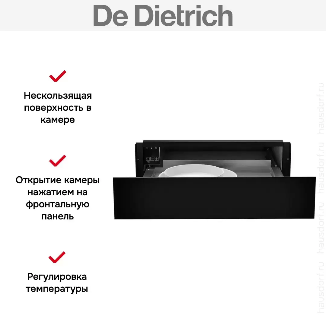 Встраиваемый подогреватель De Dietrich DWD4810B — шкаф для подогрева посуды премиум-класса от французского производителя De Dietrich.