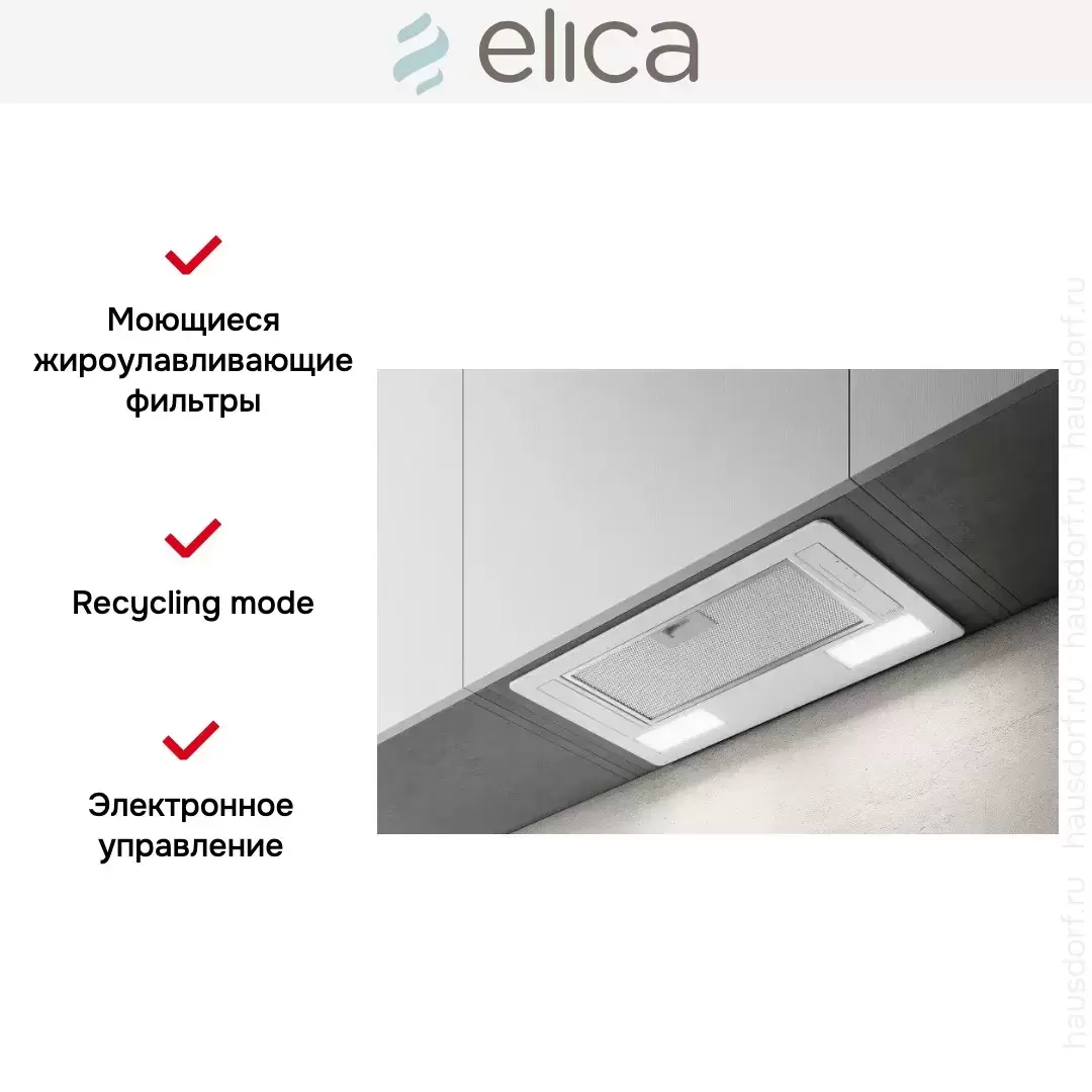 Встраиваемая вытяжка ELICA ERA C WH/A/52 — кухонная вытяжка класса люкс, итальянского производства, сочетающая надёжность и передовые технологии Elica.