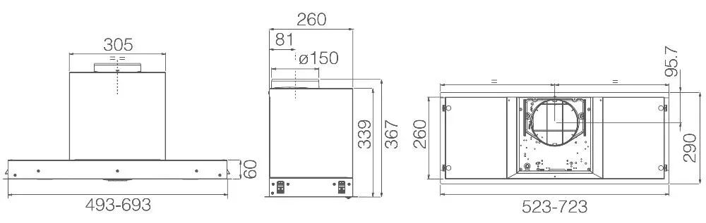 Тип вытяжки: встраиваемая. Тип управления: электронное.