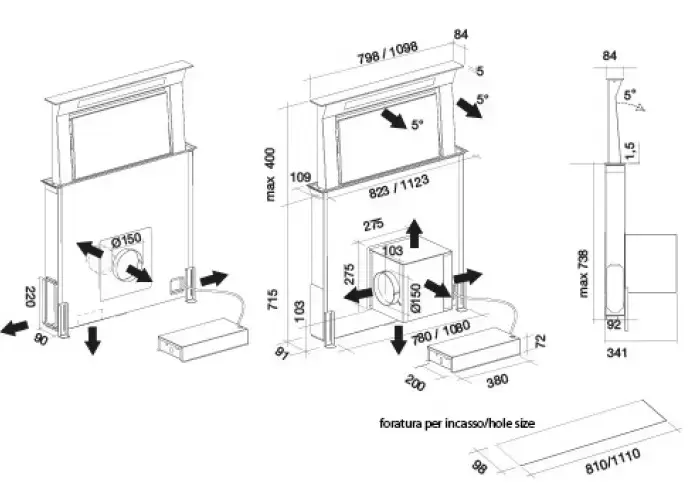 | Дополнительные возможности | Пульт д / у 105080050 Мотор Slim для вытяжки DOWN DRAFT (600) Аспиратор (мотор) для вытяжки DOWN DRAFT (800) |