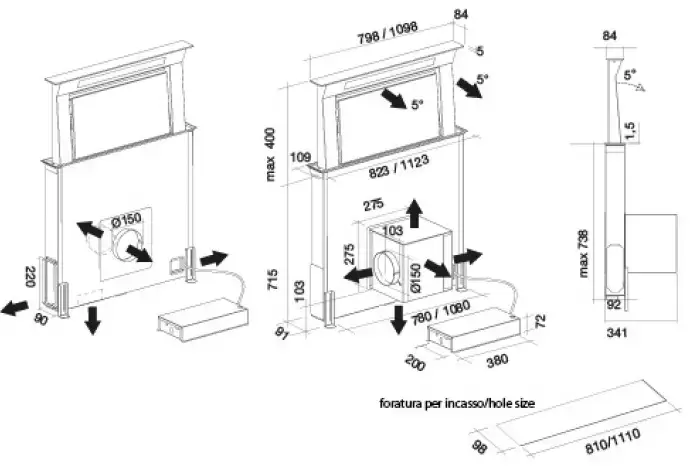 | Тип вытяжки | Встраиваемая |