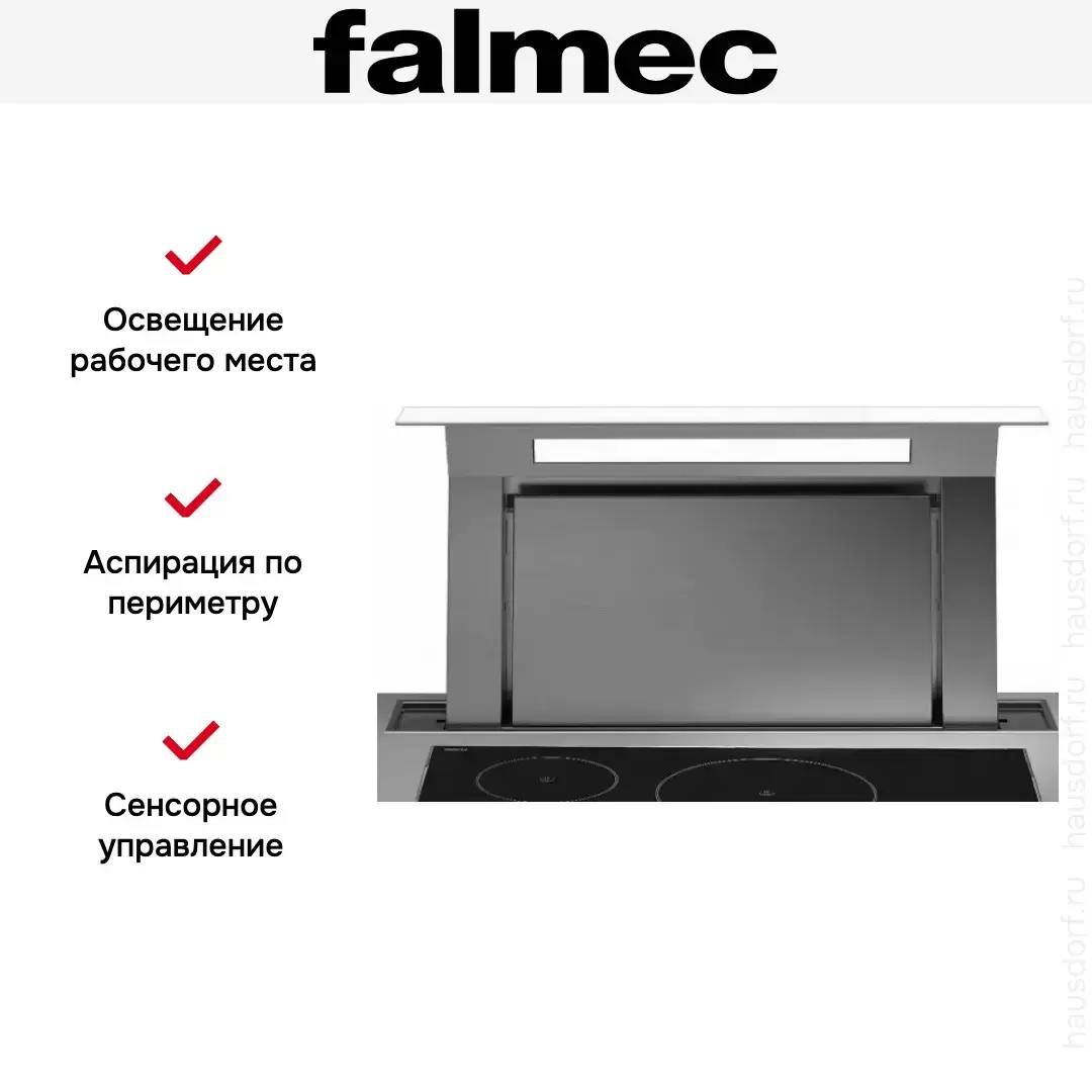 Встраиваемая вытяжка Falmec Down Draft 90 vetro ECP white — кухонная вытяжка высшего класса, итальянского производства, сочетающая надёжность и передовые технологии Falmec.