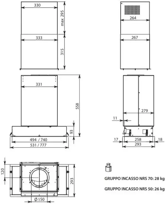 Встраиваемая вытяжка Falmec Gruppo Incasso 70 ix (800) (c системой NRS) ECP — флагманская модель в линейке Falmec (итальянского производства), кухонная вытяжка высшего класса.
