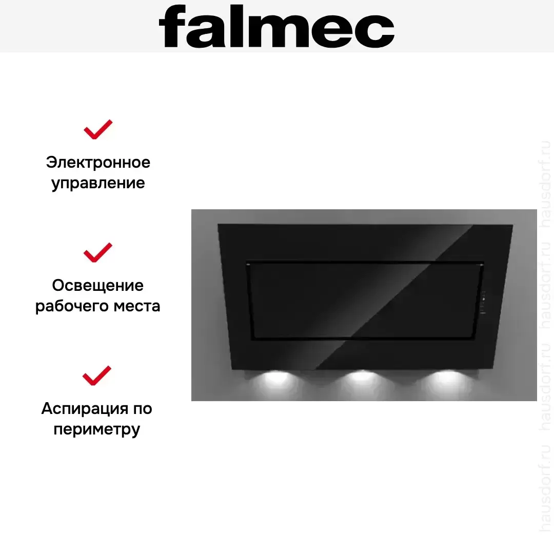 Вытяжка Falmec QUASAR GLASS BLACK 80 — флагманская модель в линейке Falmec (итальянского производства), кухонная вытяжка высшего класса.