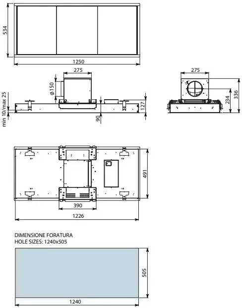 Встраиваемая вытяжка Falmec Skema 120 black — кухонная вытяжка высшего класса, итальянского производства, сочетающая надёжность и передовые технологии Falmec.
