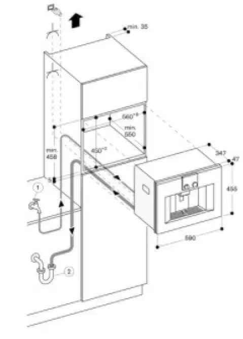 | Дополнительные параметры | Дверь без ручки / автоматическое открывание двери Непрерывный проточный нагреватель Двойная порция американо, молочной пены, теплого молока, горячей воды Текстовый дисплей Функция персонализации, можно персонализировать и запомнить до 8 напитков 4 настройки размера напитка, объем можно индивидуально отрегулировать в соответствии с размером чашки 8 уровней крепости кофе от очень слабого до очень крепкого Кофе: 3 уровня Горячая вода: 10 баллов 4 уровня соотношения кофе и молока Диспенсер для кофе с регулируемой высотой от 7 см до 15 см Диспенсер со встроенной молочной системой Пресная вода - функция наполнения бака пресной водой Электронный регулятор уровня заполнения поддона для сбора капель и контейнера для кофейных остатков Интеграция в домашнюю сеть для цифровых услуг (Home Connect) либо через кабельное соединение LAN (рекомендуется), либо через беспроводное соединение через WiFi Вспениватель молока можно мыть в посудомоечной машине Фасад прибора выступает на 47 мм от мебельной полости При установке в углу требуется боковой зазор Угол открытия двери ок. 110 ° (состояние при поставке) - монтажное расстояние до стены должно быть не менее 350 мм Угол открытия двери ок. 155 ° - монтажное расстояние до стены должно быть не менее 650 мм Угол открытия двери ок. 92 ° - монтажное расстояние до стены должно быть не менее 100 мм (№ запасной части 00636455) Установка непосредственно над WS высотой 14 см в стандартизированную нишу 59 см Выпускной шланг ни в коем случае не должен располагаться выше нижнего края прибора. Выпускной шланг также должен быть как минимум на 150 мм ниже выпускного отверстия прибора Если прибор расположен слишком далеко от основного сифона, дренажную систему необходимо отрегулировать на месте (монтаж в здании) Водяной патрубок (1) для наливного шланга должен быть всегда доступен и не расположен непосредственно за устройством Соединение выпускного шланга с сифоном (2) не должно находиться непосредственно за устройством и должно быть доступно Порт LAN находится сзади в правом нижнем углу Впускной шланг 165 см с соединением 3 / 4 дюйма (26,4 мм), расширяемый Выпускной шланг (ø 18 мм) 170 см (HT-Hose) Потребляемая мощность в режиме ожидания / дисплея на 1,0 Вт Потребляемая мощность в режиме ожидания / выключенного дисплея 0,5 Вт Потребляемая мощность в режиме ожидания / сеть 2 Вт Время автоматического перехода в режим ожидания / отображение на 30 мин Время автоматического перехода в режим ожидания / выключения дисплея 30 мин Время автоматического перехода в режим ожидания / сеть 30 мин |